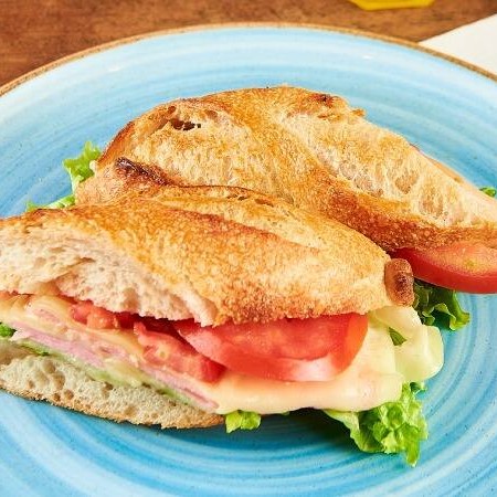 Um verdadeiro triunfo culinário, o Sanduíche Louvre é uma requintada obra de arte comestível. Generosamente recheado com o suculento e derretido queijo gruyère, harmoniza graciosamente com o sabor único do presunto. As camadas de folhas verdes e tomates adicionam uma explosão de cor e frescor, enriquecendo não só o visual, mas também o valor nutritivo do prato. O toque final fica por conta do pão artesanal, que você pode escolher de acordo com sua preferência, personalizando seu sanduíche para uma experiência verdadeiramente sua. Saboreie cada mordida desta obra prima da nossa categoria de Sanduíches.