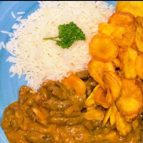 Desvende o sabor inigualável de nosso Strogonoff de Carne, preparado com a mais nobre porção do filé mignon, envolvida em um molho cremoso e irresistível. Tradicionalmente servido com arroz branco, perfeitamente solto e uma porção generosa de batata, (podendo escolher entre Batata Rústica, Batata Palha ou Chips de Batata Baroa) que confere textura e sabor únicos ao prato. Para completar a experiência gastronômica, escolha uma bebida de nossa seleção. É o equilíbrio perfeito para uma refeição prazerosa e completa, capaz de satisfazer os paladares mais exigentes.