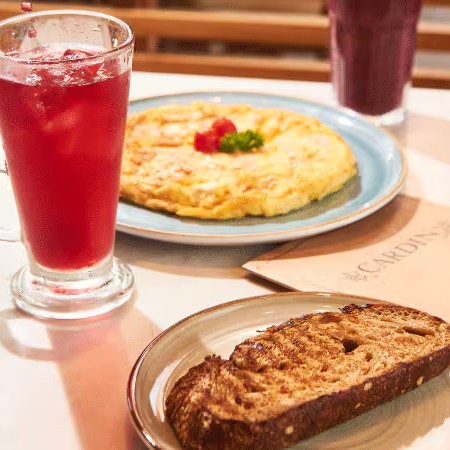 Revigore-se com nosso Café da Manhã Verão, uma combinação leve e deliciosa, ideal para começar o Dia. Este combo inclui um Chá Gourmet Gelado, refrescante e sofisticado, acompanhado de um suculento suco de açaí com banana, repleto de energia e vitalidade. Além disso, oferecemos um omelete saboroso, recheado com a autêntica muçarela de búfala e peito de peru suculento. Para completar, desfrute da nossa irresistível torrada sourdough integral, feita com fermentação natural, que lhe confere uma textura única e um sabor sem igual.