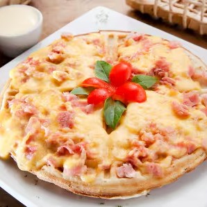 Aprimorando a clássica receita do Waffle Belga, apresentamos o Fromage. Este prato leva o nosso tradicional Waffle Belga, que se destaca por sua textura interna suavemente macia e exterior levemente crocante. Mas não paramos por aí, enriquecemos esta delícia com uma generosa cobertura de queijo gruyère derretido e presunto em cubos, proporcionando uma experiência gustativa única. Ideal para os amantes de Waffles que buscam uma refeição surpreendente.