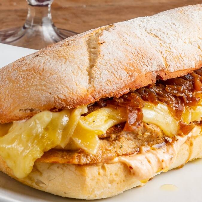 O Sanduíche Chicken é uma obra-prima da culinária que cativa todos que o experimentam. Este delicioso sanduíche é composto por um suculento filé de frango, temperado com uma mistura secreta de especiarias, e um saboroso queijo gruyère derretido. Acrescenta-se a esta combinação divina, o toque único das nossas cebolas caramelizadas que conferem uma doçura sutil. Para completar, uma mousse exclusiva de ervas finas é adicionada, agregando um sabor vibrante e uma textura incrivelmente suave. Este é um sanduíche que irá despertar todos os seus sentidos e lhe proporcionar uma experiência gastronômica inesquecível.