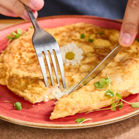 Desfrute de uma deliciosa omelete preparada com três ovos frescos, ricamente recheada com queijo Gruyère de textura suave e presunto de alta qualidade. Este prato é finalizado com brotinhos frescos e uma pitada de flor panc, para adicionar um toque de frescor. A perfeita combinação entre o sabor forte do queijo, a suavidade do presunto e a textura leve dos ovos torna esta omelete uma opção irresistível. É a escolha ideal para iniciar o Dia com um café da manhã nutritivo ou para um almoço leve e saboroso.