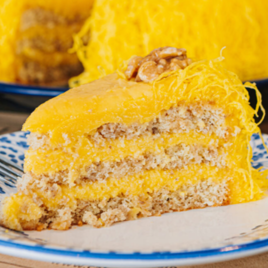 Nossa Torta de Nozes com Baba de Moça é a escolha perfeita para quem busca sofisticação e sabor incomparável. As camadas de pão de ló de nozes, intercaladas com o doce aveludado de baba de moça, criam uma combinação clássica e irresistível que é sinônimo de elegância e tradição nas festas mais memoráveis. Finalizada com fios de ovos e nozes crocantes, essa torta eleva qualquer evento a outro nível. Cada fatia é uma verdadeira obra-prima, cuidadosamente elaborada com ingredientes de altíssima qualidade, garantindo que sua experiência seja única. Diâmetro: 22 cm, serve até 20 fatias.