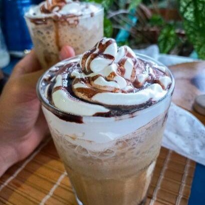 Feito com Creme de Café Tradicional, gelo de café, leite, sorvete de creme, calda de chocolate artesanal e chantilly.