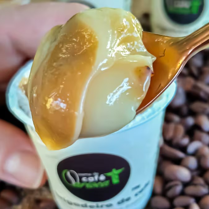 Juntamos duas paixões nacionais: o Café e o Brigadeiro, e criamos o brigadeiro de colher sabor café. Não contém chocolate, é feito à base do nosso creme de café.