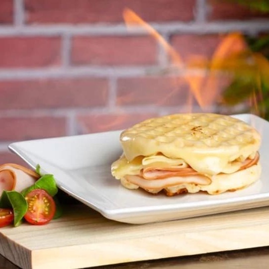 Waffle Pão de Queijo | Peito de Peru Queijo Requeijão e Muçarela gratinada