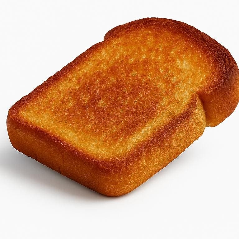 Duas fatias de pão de forma artesano com manteiga na chapa.