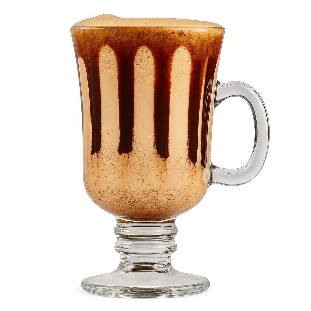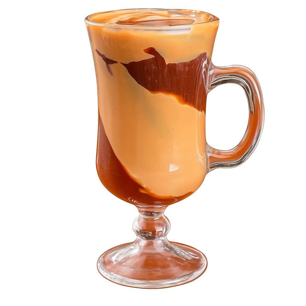 Doce de leite vai no interior do copo fazendo uma combinação perfeita com o café. Bebida não muito doce.