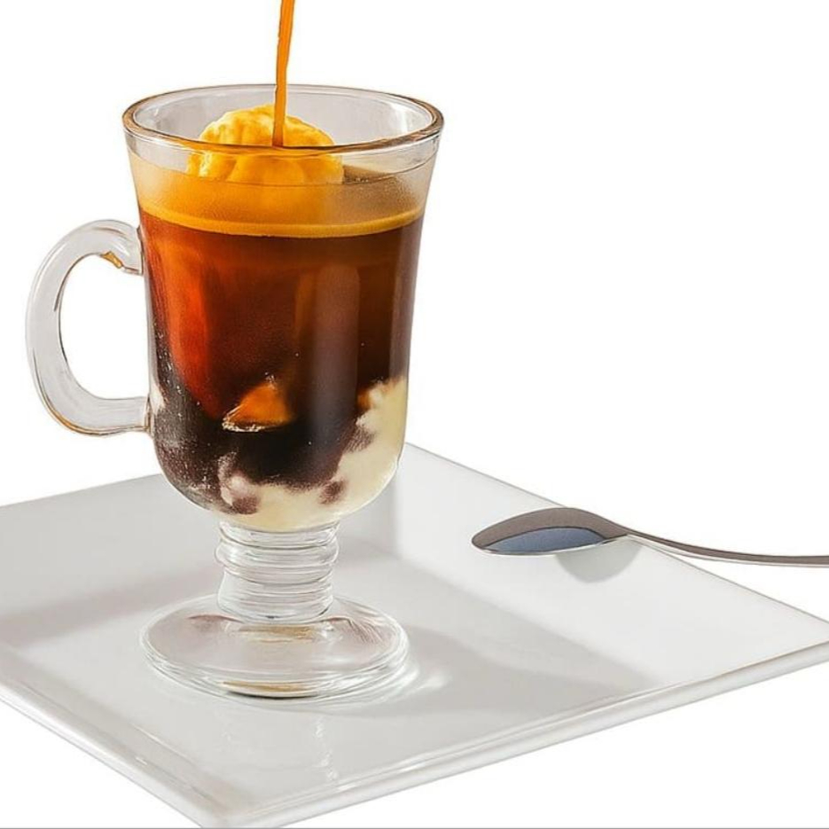 Sorvete de creme "afogado" no café expresso e calda de chocolate.
