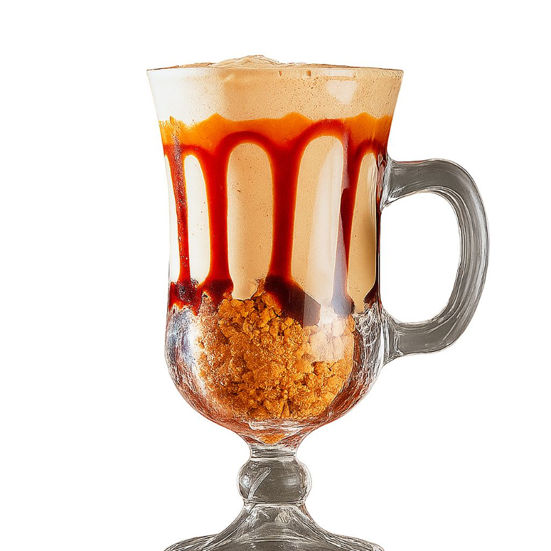 Uma combinação perfeita de cappuccino gelado e cremoso com a tradicional paçoca de pilão.