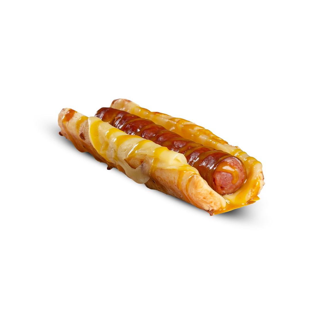 Delicioso pão de queijo recheado com linguiça, acompanha molho de mostrada e mel ou barbecue de goiabada, você que escolhe!