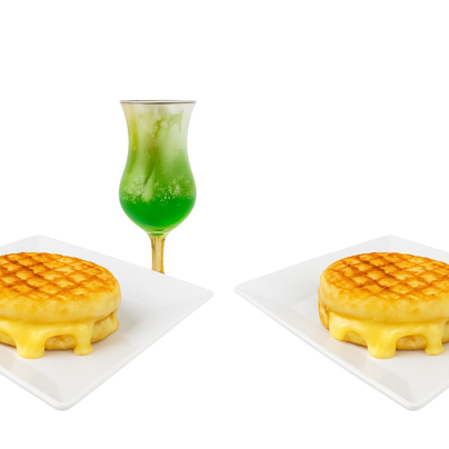 2 Waffle de pão de queijo, 2 deliciosa Soda italiana a sua escolha.