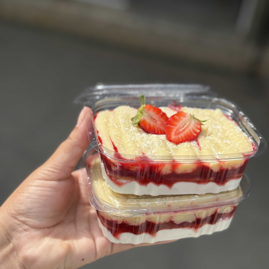 Pavê de ninho com geleia artesanal de Morangos