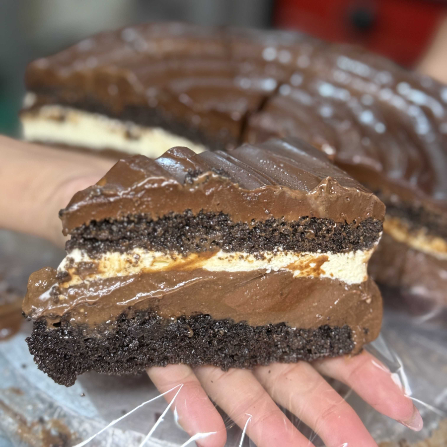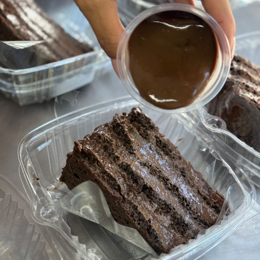 Massa de chocolate molhadinha com recheio cremoso de brigadeiro.1 unidade!