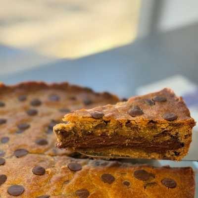 Fatia de cookies com gotas de chocolate Nobre recheada de Nutella