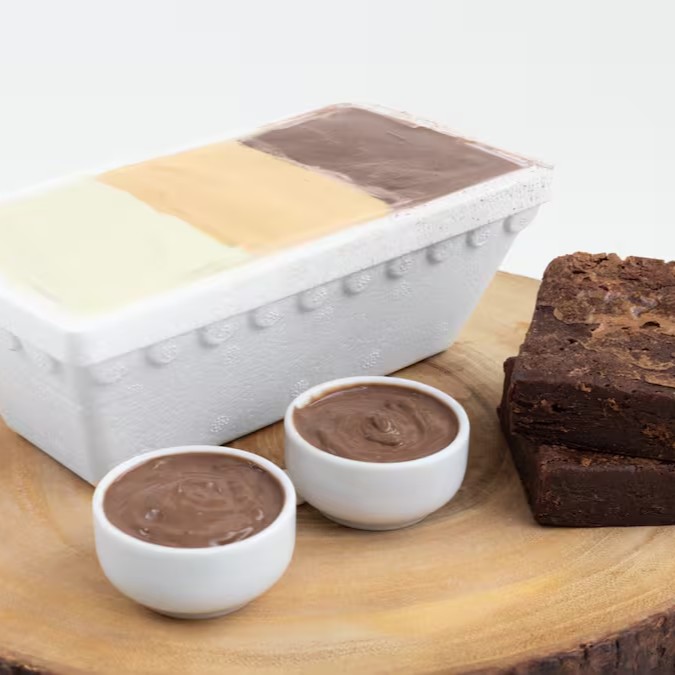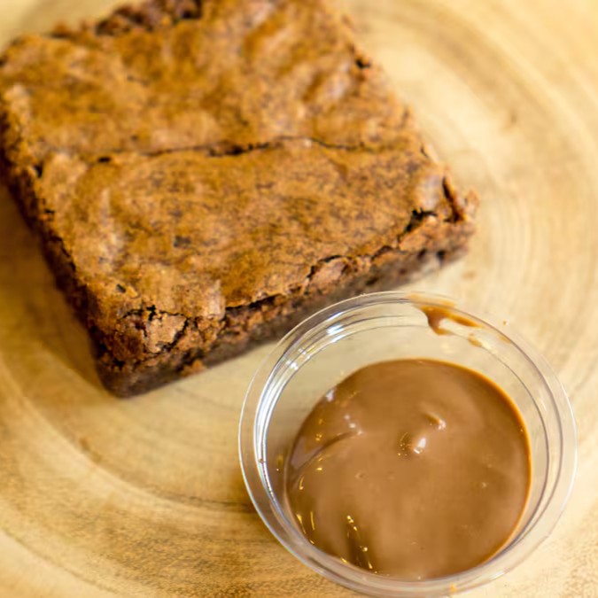 Embalagem de 700ml + 2 brownies com calda de brigadeiro belga