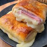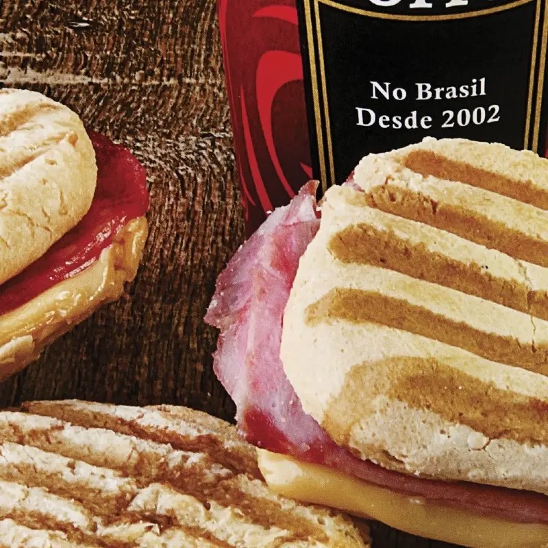 Pão de queijo lanche recheado com queijo mussarela e presunto magro. Contém glúten e contém lactose.