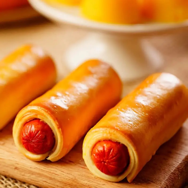 Delicioso hot dog no estilo americano! pig in a blanket! mestre de vendas! Contém glúten.