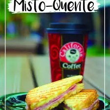 Pão fatia alta, feito na manteiga com queijo mussarela e presuntos apenas com queijo mussarela. Contém glúten e contém lactose. Copo de café na imagem é apenas ilustrativo, não faz parte do item comprado.