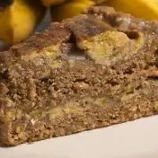 Deliciosa torta de banana integral podendo ser servida com canela, aquecida ou não. Contém glúten.