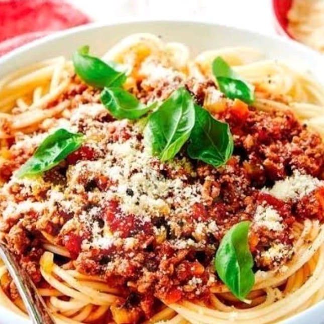 Delicioso macarrão à bolonhesa, com molho de carne moída e especiarias, perfeito para qualquer hora do dia.