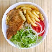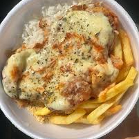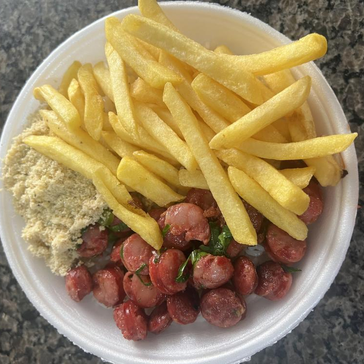 Porção generosa de 250g fritas, tiras de carne, de frango e linguiça, acompanhado com uma farofa deliciosa.