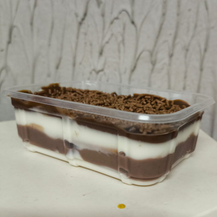 150ML. Camadas de biscoito e creme de ninho e chocolate cremoso, finalizado com ganache de chocolate meio amargo.