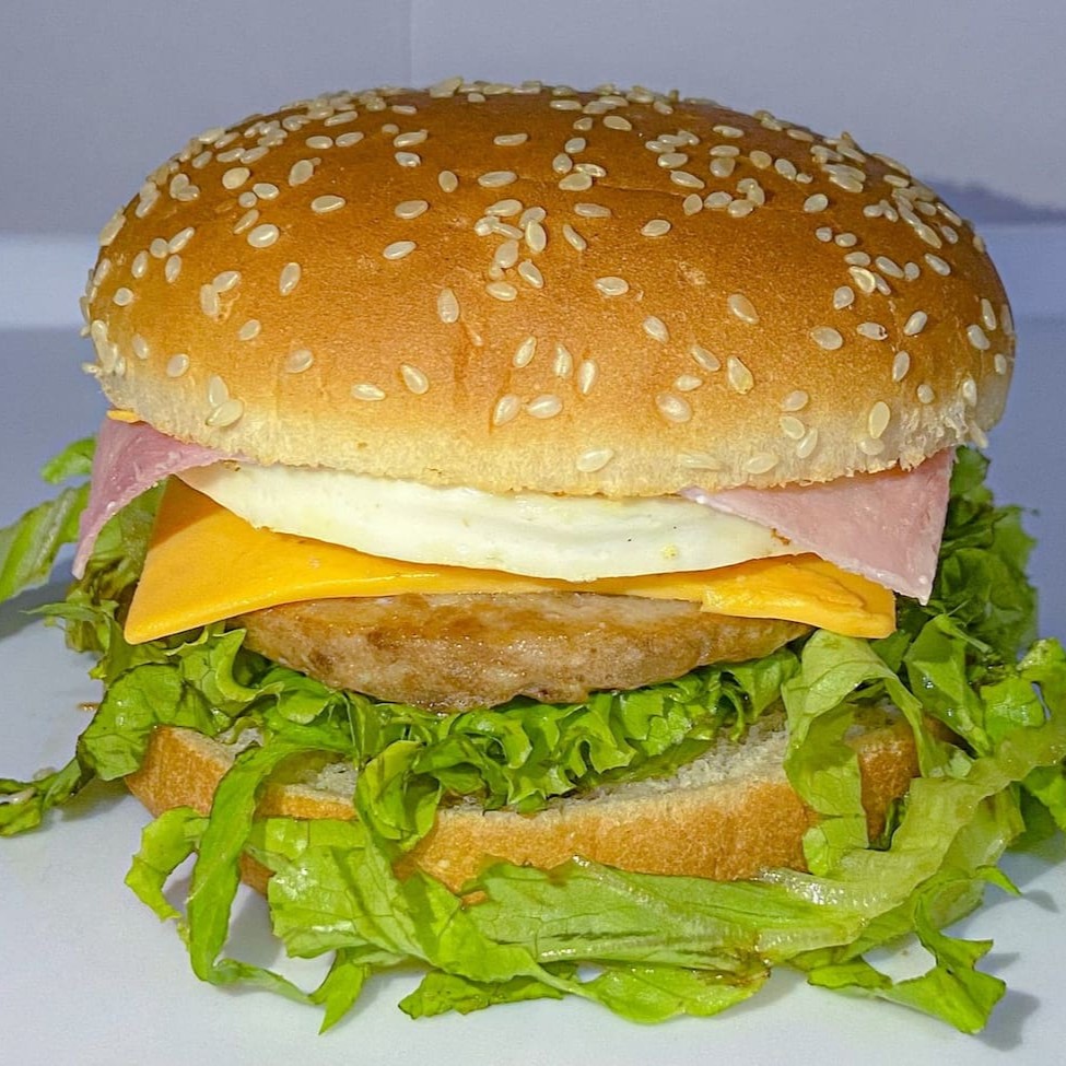 Pão, 2 carnes, 2 queijos, 2 ovos, presunto, bacon, alface e molho especial