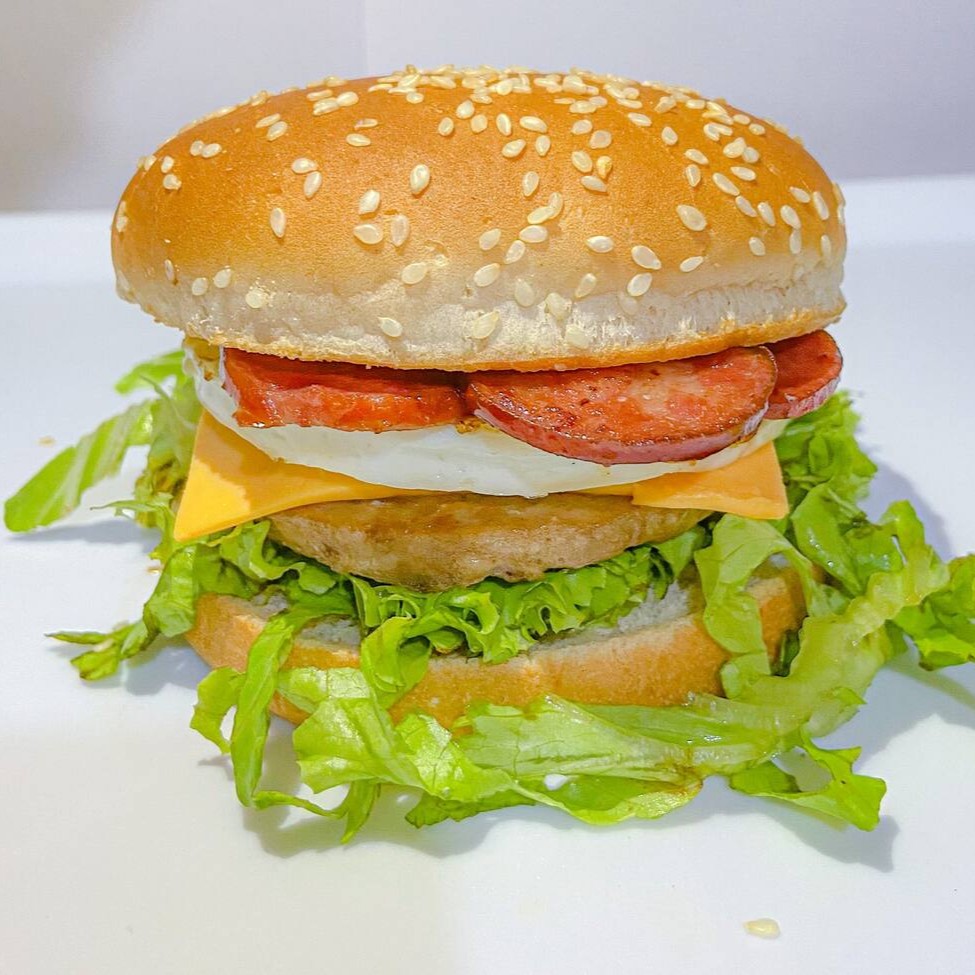Pão, carne, queijo, ovo, alface e molho especial