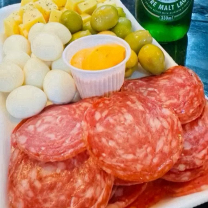 QUEIJO,OVO DE CODORNA, SALAMINHO,AZEITONAS, MOLHO ,LIMÃO