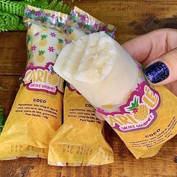 Que tal se refrescar com nosso clássico Sacolé de Coco? Preparado com coco fresco e leite extraído artesanalmente aqui na nossa loja, adicionamos também leite, leite condensado e creme de leite para garantir uma cremosidade perfeita. Com 130g de pura delícia, e sem adição de conservantes ou corantes, cada mordida é uma explosão de sabor natural e refrescância.