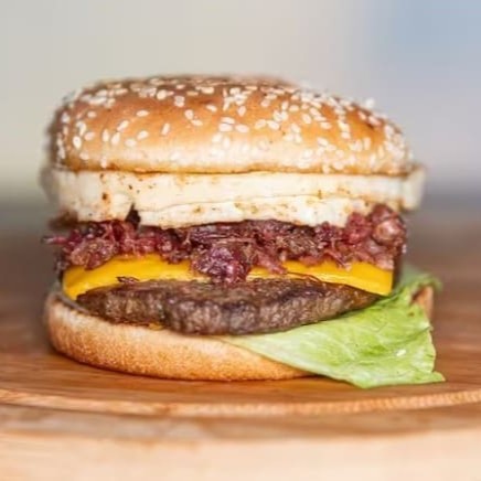 Hambúrguer de carne sabor picanha, queijo cheddar, cebola no shoyo, ovo, bacon, alface americana. Tomate e molho especial.