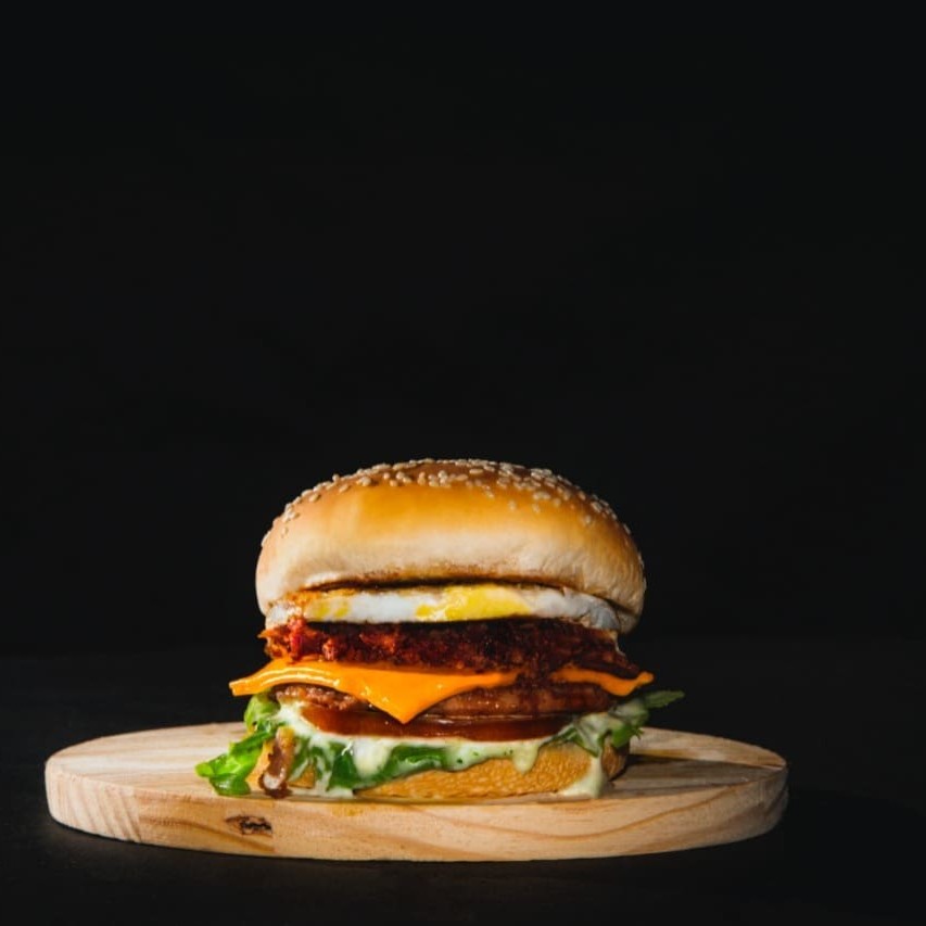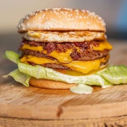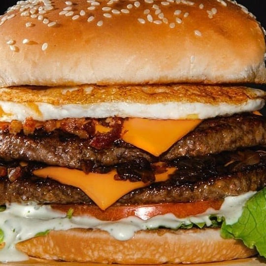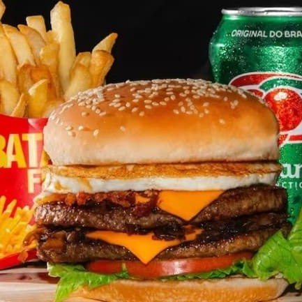 2 carnes de hambúrguer, duplo cheddar, ovo, bacon, alface americana, tomate e molho especial.