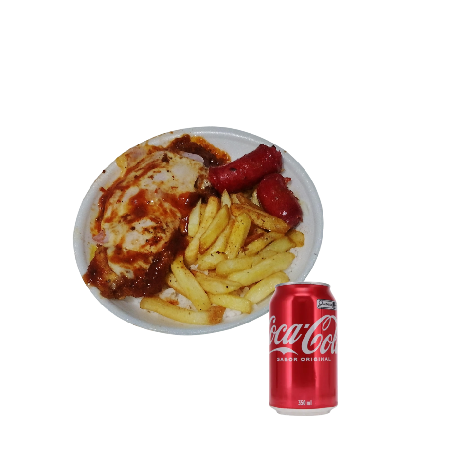 Combo: Filé De Frango Á Parmegiana, Linguiça Mineira E Fritas + 1 Coca Cola