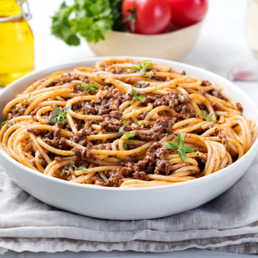 Massa tipo espaguete al dente, servida com clássico molho bolonhesa feito com carne moída, tomates frescos, alho e ervas aromáticas. Finalizado com queijo parmesão ralado. Uma receita tradicional italiana com sabor caseiro e irresistível. Grátis 1 copo guaraná (enviaremos a marca disponível)