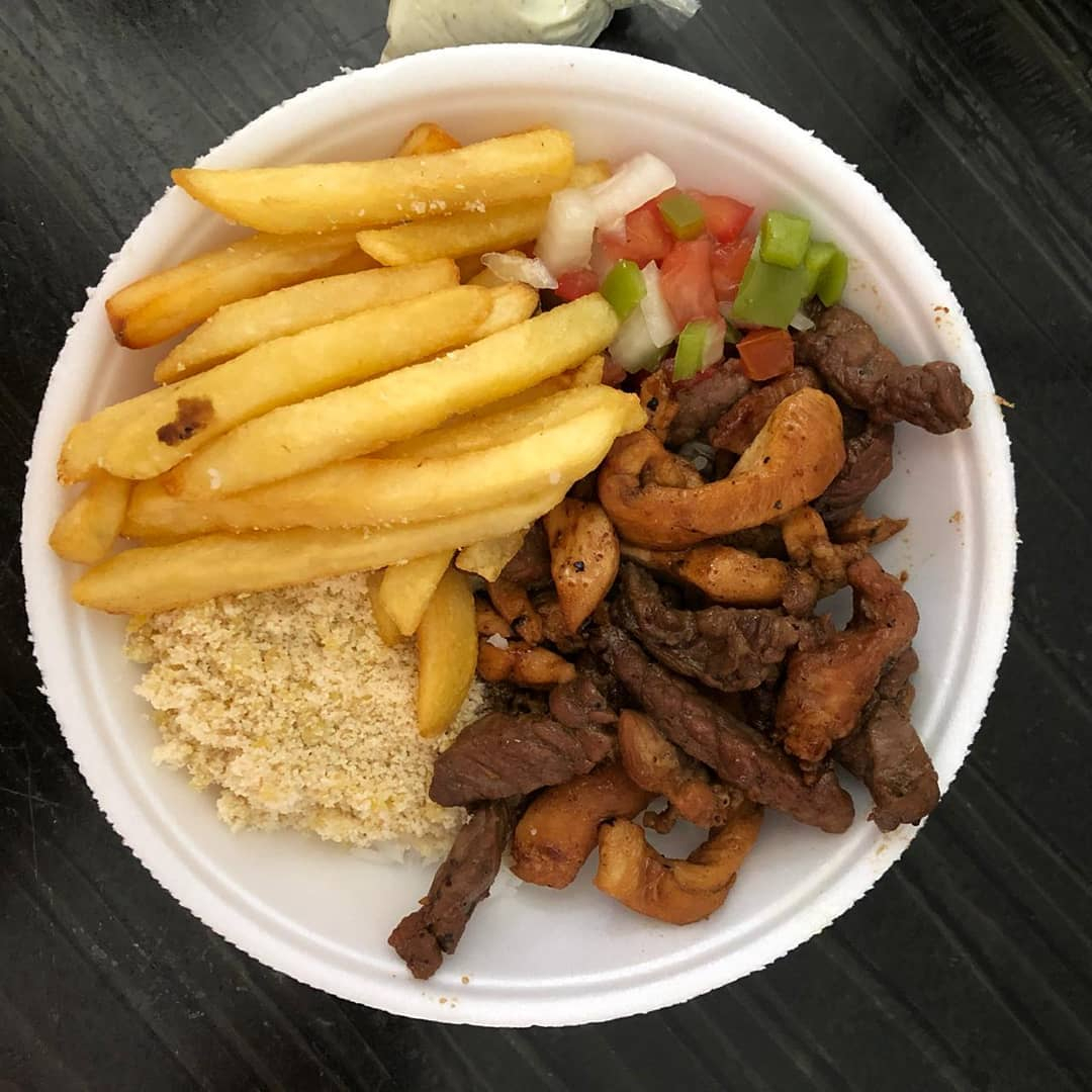 Uma versão suculenta e bem temperada do clássico churrasquinho, preparada na panela para garantir ainda mais maciez e sabor. Combinação irresistível de calabresa douradinha, alcatra macia e frango suculento, todos cozidos e envolvidos em um tempero especial que realça cada ingrediente. Acompanha arroz branquinho soltinho e feijão fresquinho, bem temperado, trazendo aquele gostinho caseiro que conforta e satisfaz. Prato completo, farto e perfeito para quem busca sabor e qualidade em cada refeição! 🍛🥩🍗