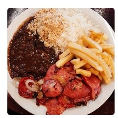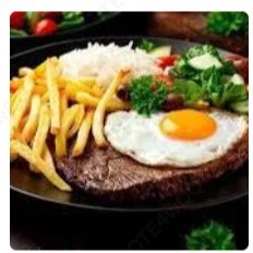 Refeição acompanha: Arroz, Feijão, Macarrão e Batata Frita