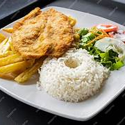 File de Frango a Milanesa + Arroz + Feijão + Macarrão + um acompanhamento a sua escolha.