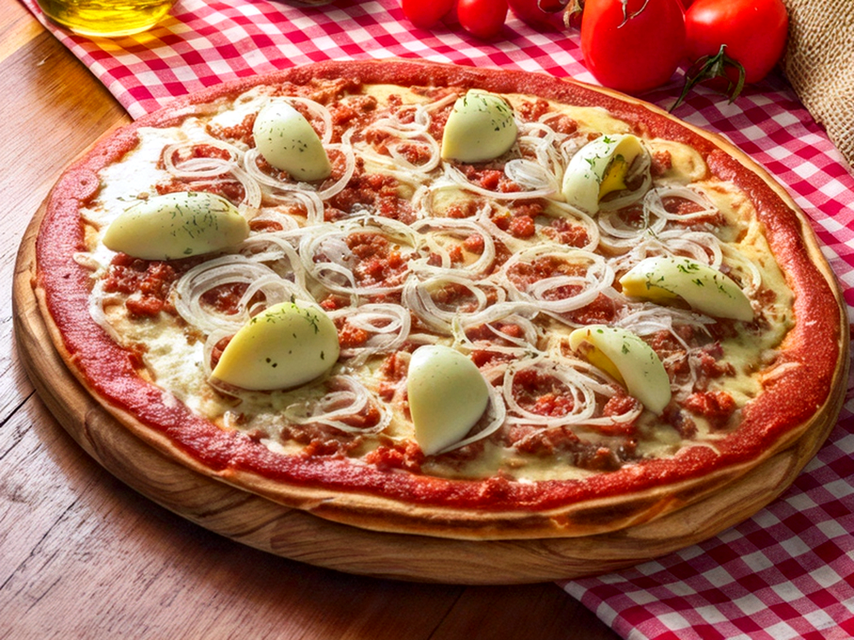 Base de molho artesanal e mussarela; Calabresa, cebola e orégano | 35cm