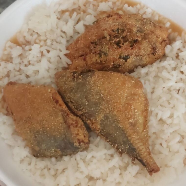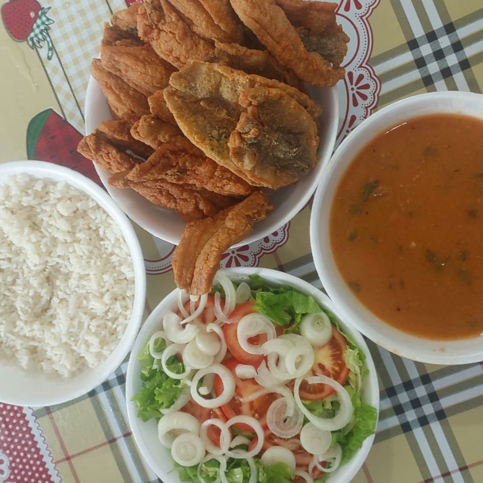 10 unidades de pescadinha 1 quentinha de arroz 1 quentinha de pirão 1 quentinha de salada
