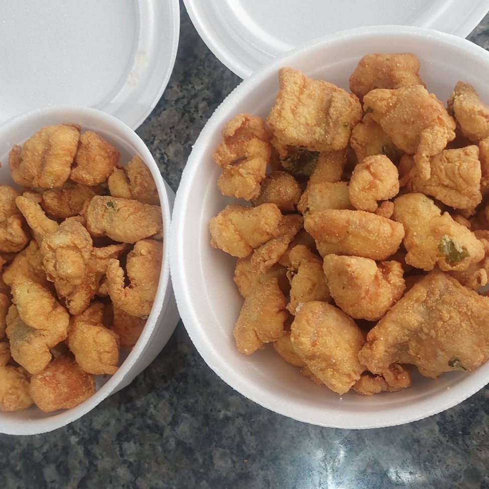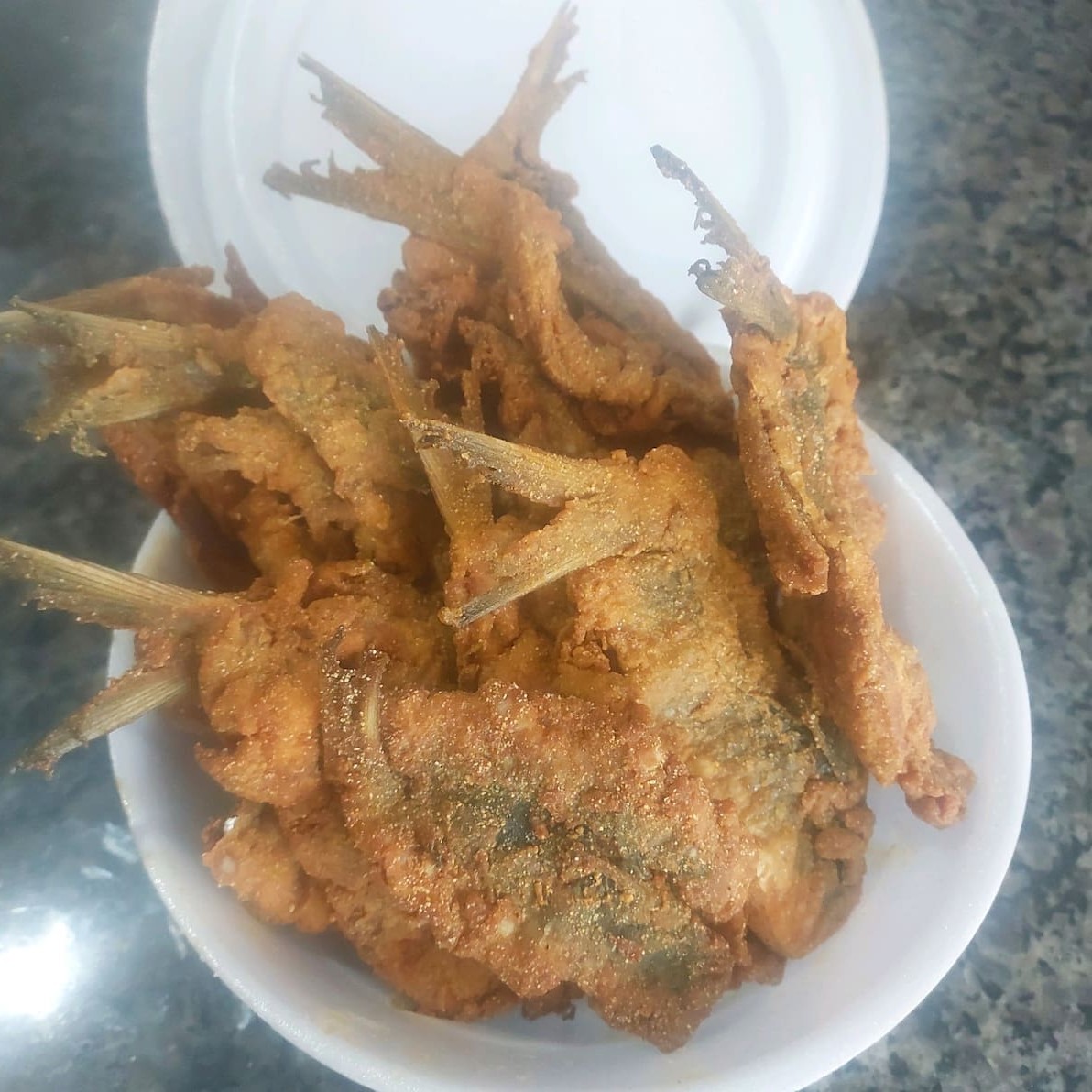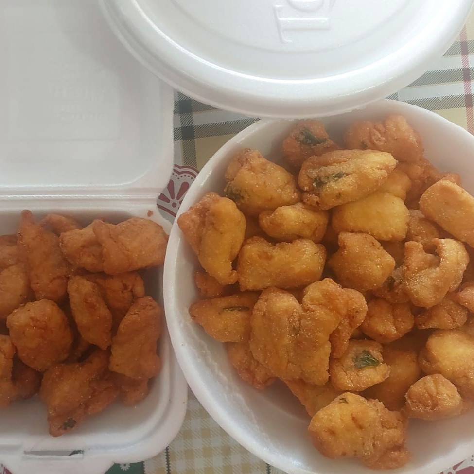 15 unidades de pescadinha 1 quentinha de arroz 1 quentinha de pirão 1 quentinha de salada