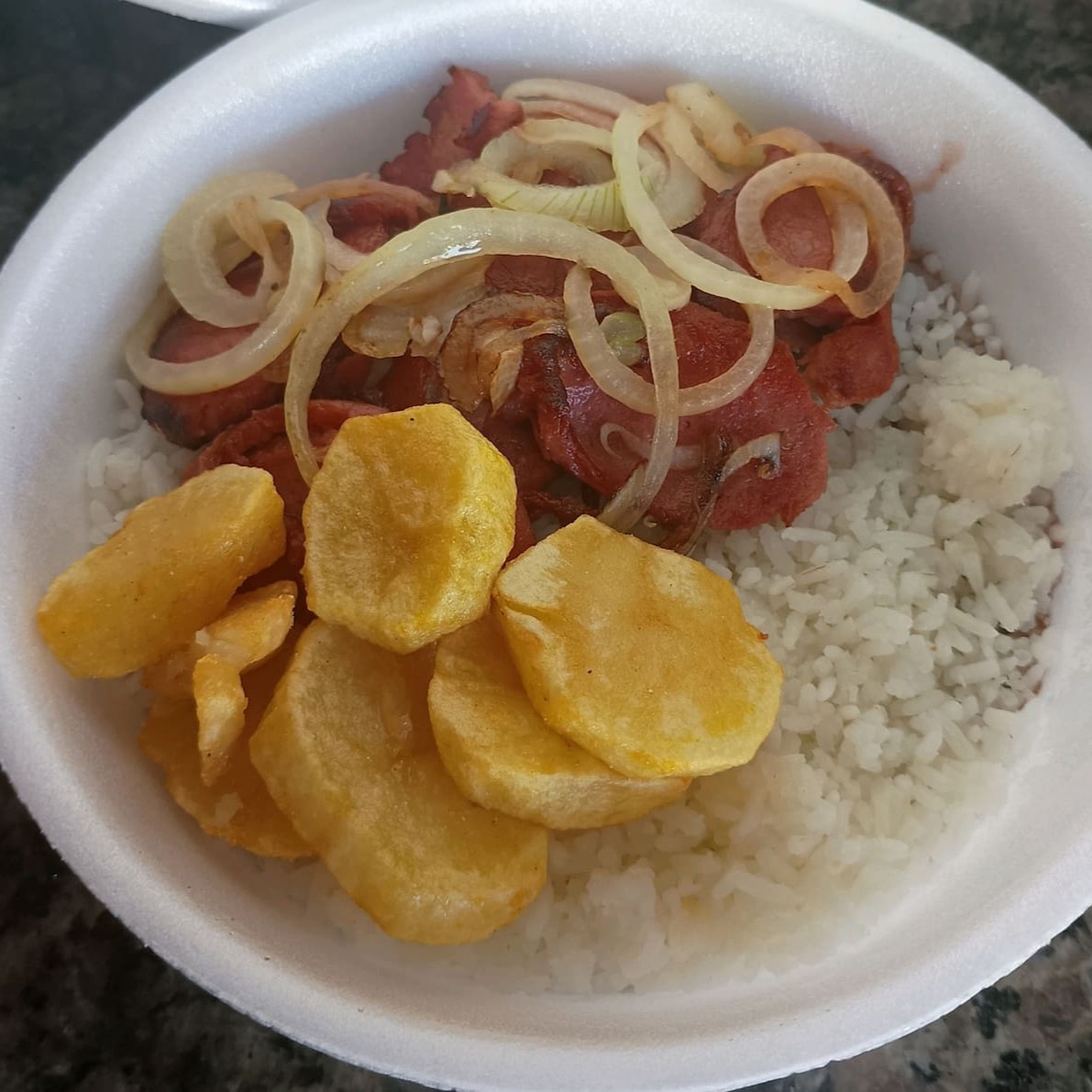 Arroz Feijão Calabresa E Batata Dourada