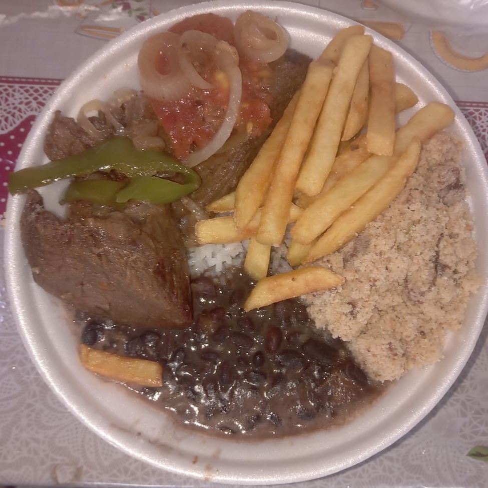 Acompanha : Arroz , Feijao , Farofa , Batat Frita e Salada