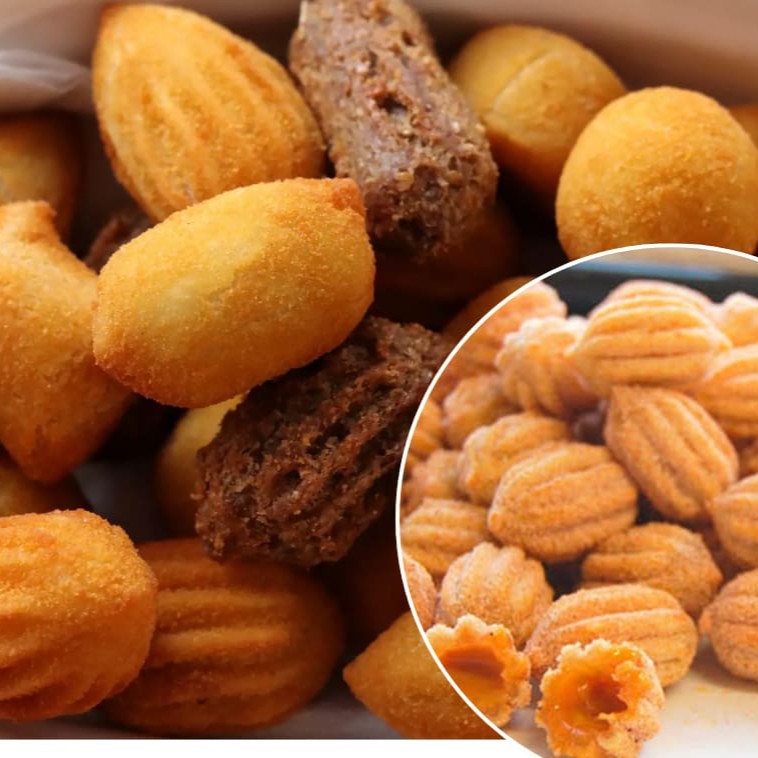 50 salgadinhos sortidos + 15 mini churros de doce de leite
