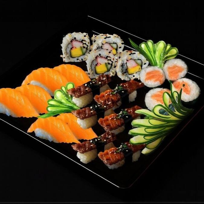 Niguiri (2 salmao 2 peixe branco 2 skin) makimono (4 uramaki skin 4 filadelfia 4 hot)