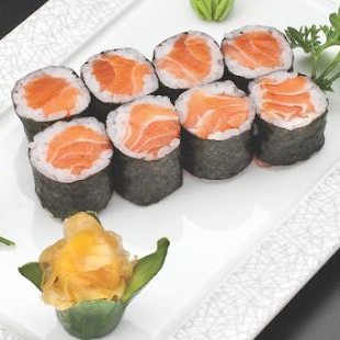 Niguiri (6 salmão, 6 skin) Makimonos (4 uramaki califórnia, 4 hossomaki filadélfia)