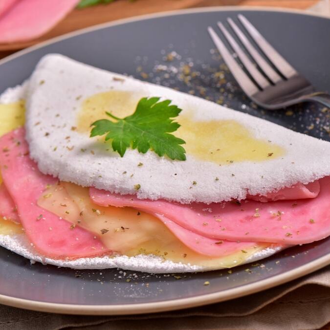 Nossa deliciosa tapioca feita com ingredientes selecionados.