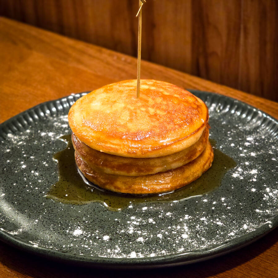 Panqueca no estilo americano acompanhada de mel.