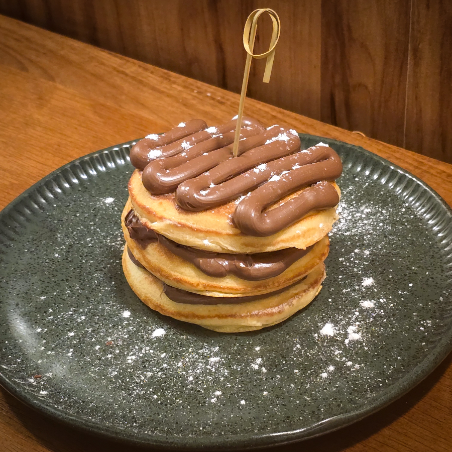 Panqueca no estilo americano coberta por Nutella.