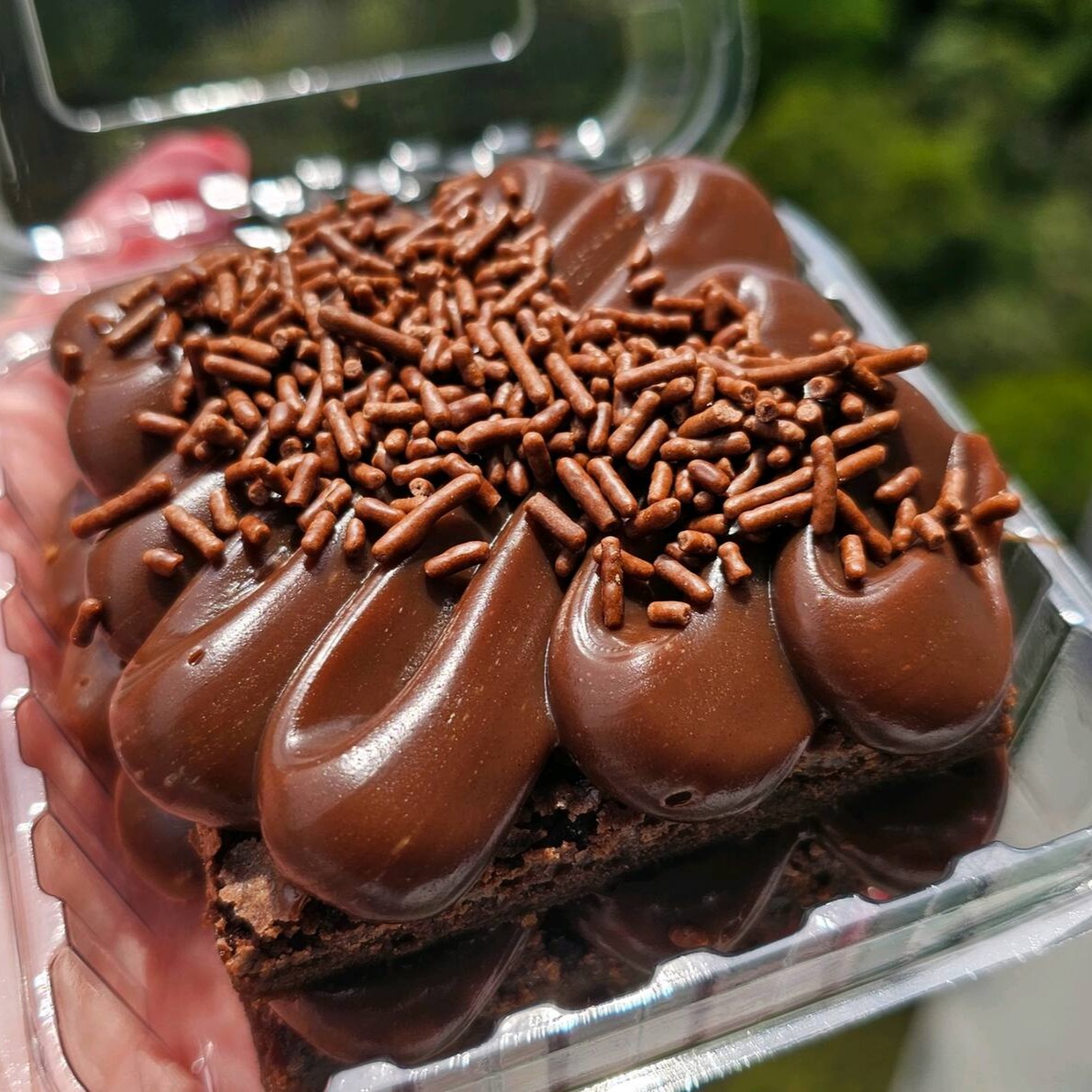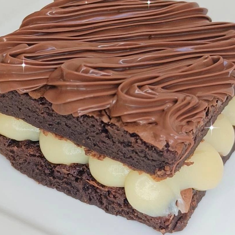 2 Camadas deliciosas de brownie com um recheio de brigadeiro super cremoso.